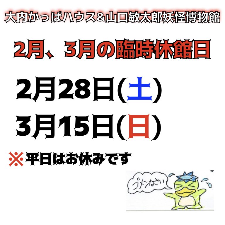 臨時休館致します(平日は休館日です)。